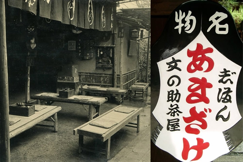 明治中期に活躍した人情ばなしの上方の落語家、二代目桂文之助が明治42年に「甘酒茶屋」を始めたのが「文の助茶屋」のはじまり。八坂神社から清水寺の東山界隈を散策する旅人や参拝者の疲れを癒すお休み処として賑わいました。 落語家は楽しい話を聴衆に提供し、聴衆は噺家の話を体で聞き、笑い泣き感動する。その聴衆に感動し噺家は修業を積む。『粋様参る無粋な店(すいさままいるぶすいなみせ)』とは、「粋なお客様は、無粋な店を育てて下さる、互いの心が通いあう時、互いに発展、道が開け、素晴らしい世界がつくりだされる」という初代の創業の心得です。100余年を経た現在もその精神を受け継ぎ、お客様から愛される商品つくりとともに皆様の幸せに貢献できるよう1歩づつ歩んで参ります。