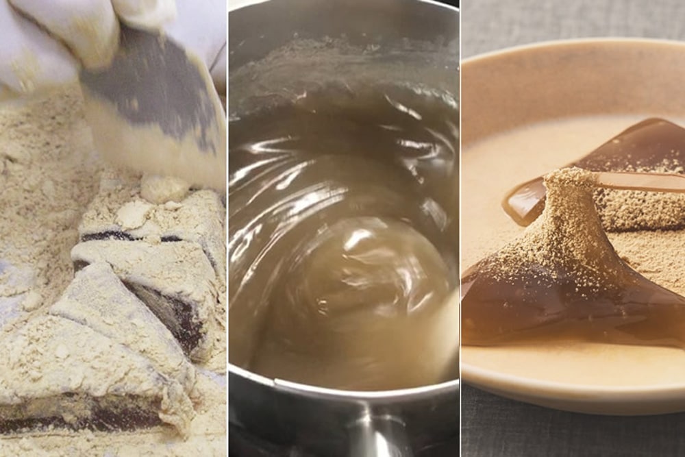 本わらび粉は、採取した蕨の根から5%程度しか採れない大変希少なもので、“黒い宝石”とも言われています。一般的に広く使われている、海外産やサツマイモのデンプンを代用したわらび餅との違いをご賞味ください。